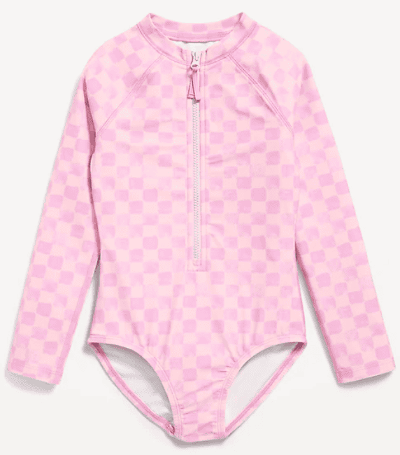 My kids always need new bathing suits. Currently my favourite places to get their bathing suits are Old Navy and Gap because of how they fit, but also because they have great sales often. (You know I love a deal.) I really like these one piece rash guard suits because of the built-in UPF sun protection.
