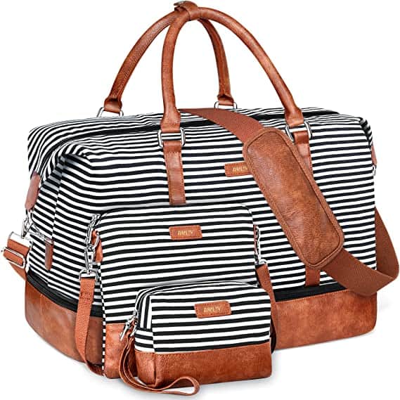 Contains: canvas weekender bag, messenger bag, storage bag. The weekender bag for women is mainly made of high-quality Canvas and PU leather. Suitable for weekend trips, short-term business trips, and daily trips, and with enough space for travel necessities.