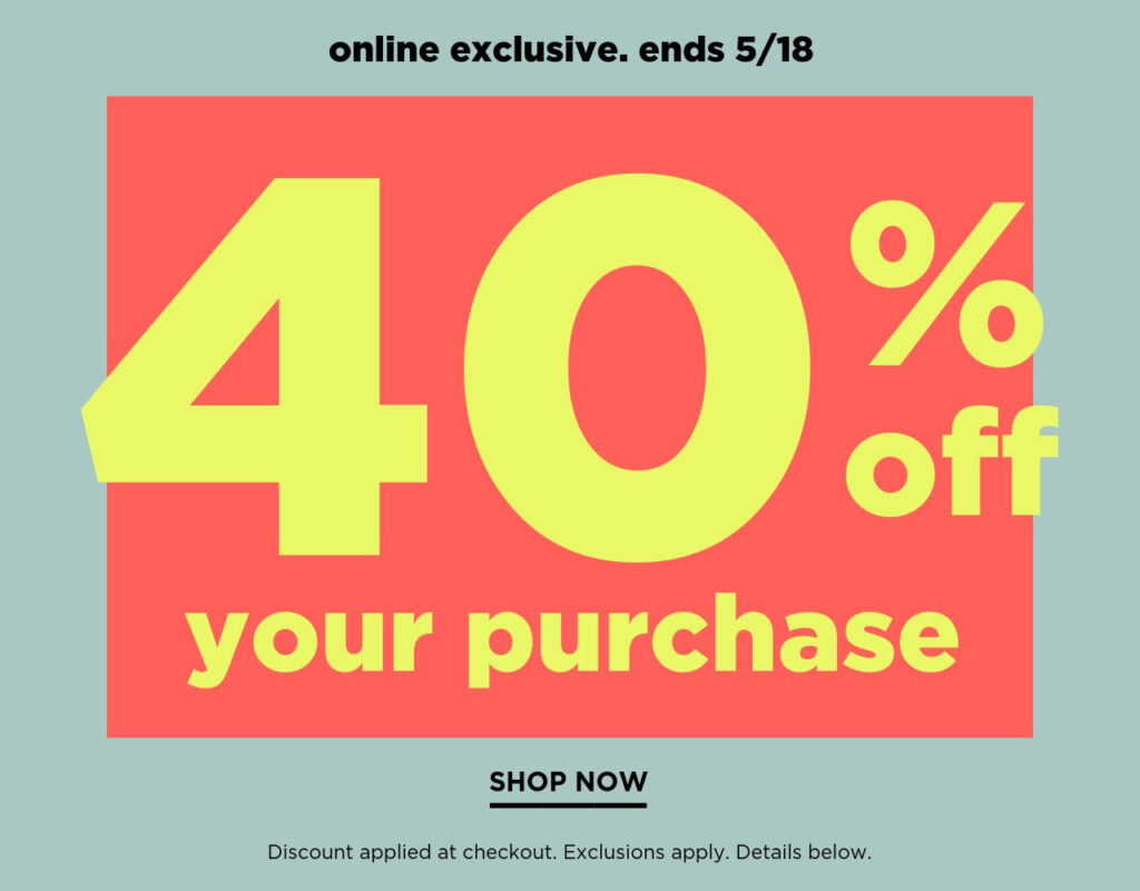 For a limited time only! Save 40% off your online purchase from Old Navy Canada! I’d say it’s a great time to buy your summer essentials! The sale even includes clearance!