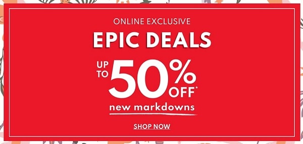 They are in the midst of an online exclusive Epic Deals sale. You’ll find savings of up to 50% off new markdowns! Looks like prices are starting as low as $0.79.
