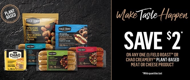 Save $2.00 off any one Field Roast or Chao Creamery plant based meat or cheese product!