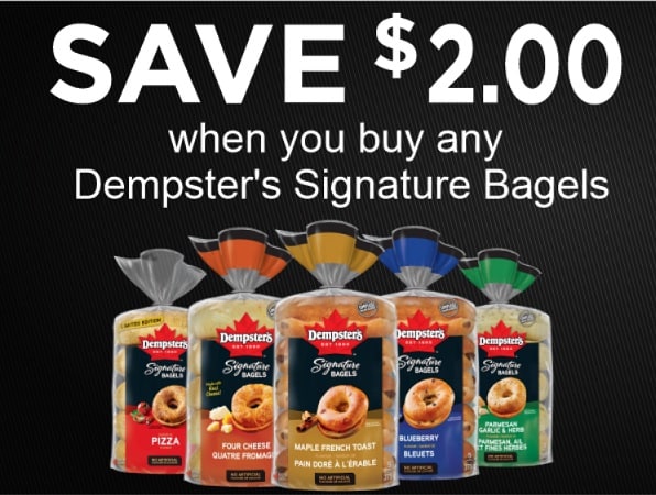 Save $2.00 off the purchase of Dempster’s Signature Bagels.
